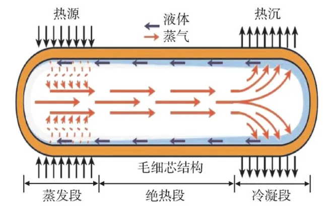 热管工作原理 热管具有极高的导热效率,且体积较小,重量轻,适合应用于空间受限的设备中。但尽管热管导热效率高,但其散热能力受到热管数量和设计的限制,主要用于中等功耗或空间受限的场景,难以在超高功率芯片中单独使用。